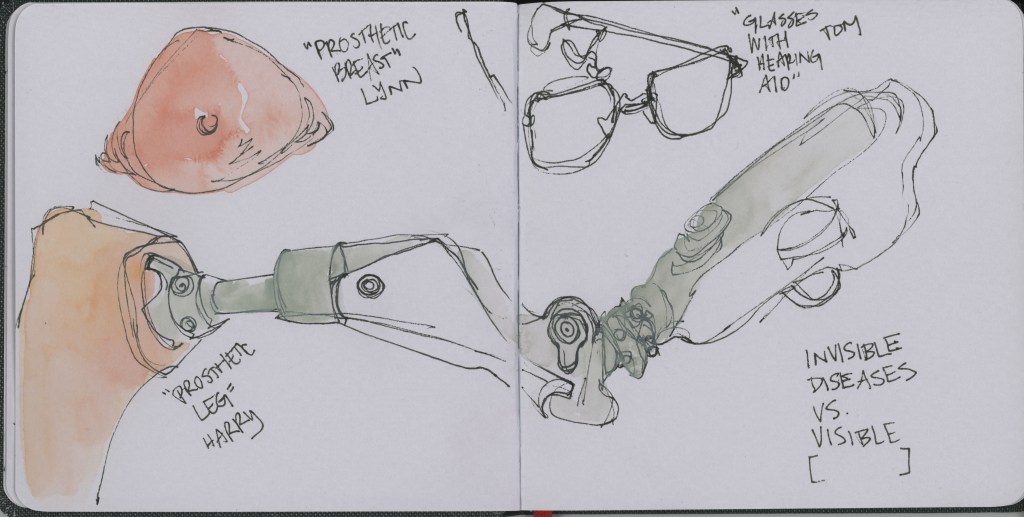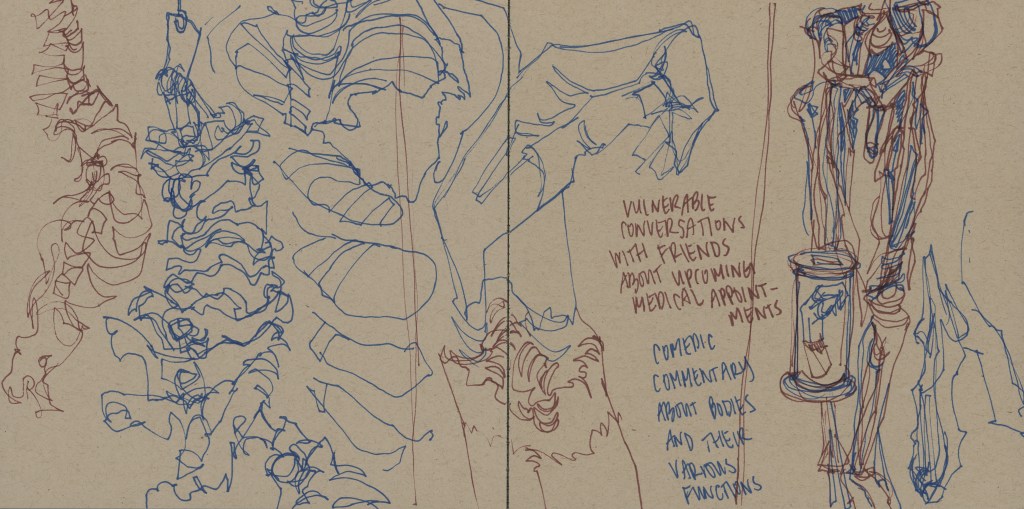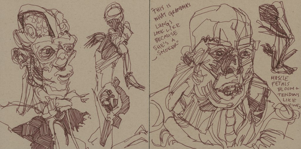 Sketchbook research from Real Bodies in Flint, MI (2023)