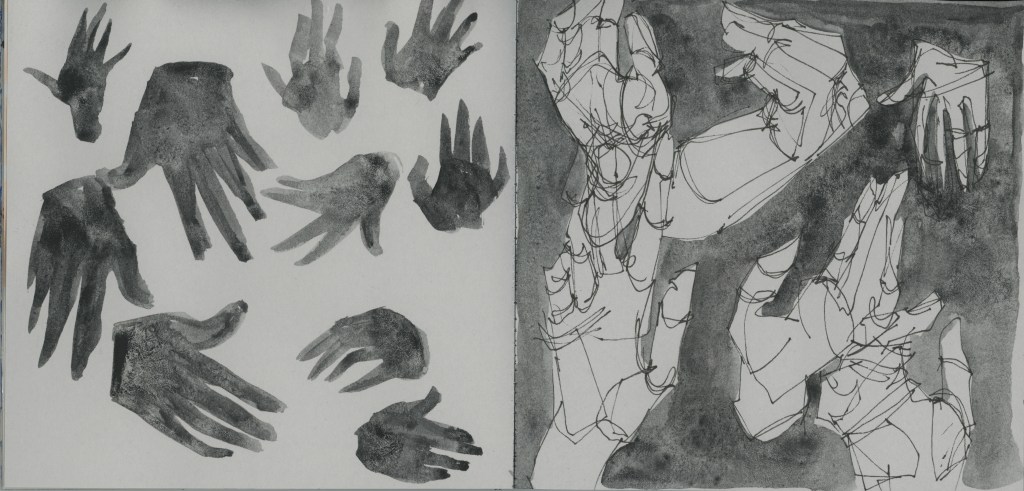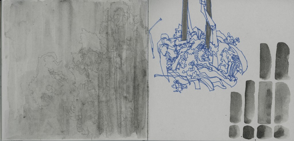 Observational drawings and studies from grey sketchbooks (2023)